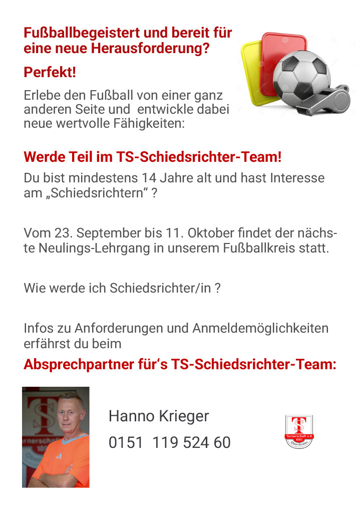 - TS-Vorstand zieht 2024‘er Bilanz und prüft erneut Vereinsanlagen-VerlegungErstmals seit 20 Jahren gab es an vorderster Front der TS-Vorstandsspitze wieder eine Veränderung. Thomas Weiland schied nach 30-jähriger Vorstandszugehörigkeit,… TS-Vorstand zieht 2024‘er Bilanz und prüft erneut Vereinsanlagen-Verlegung weiterlesen