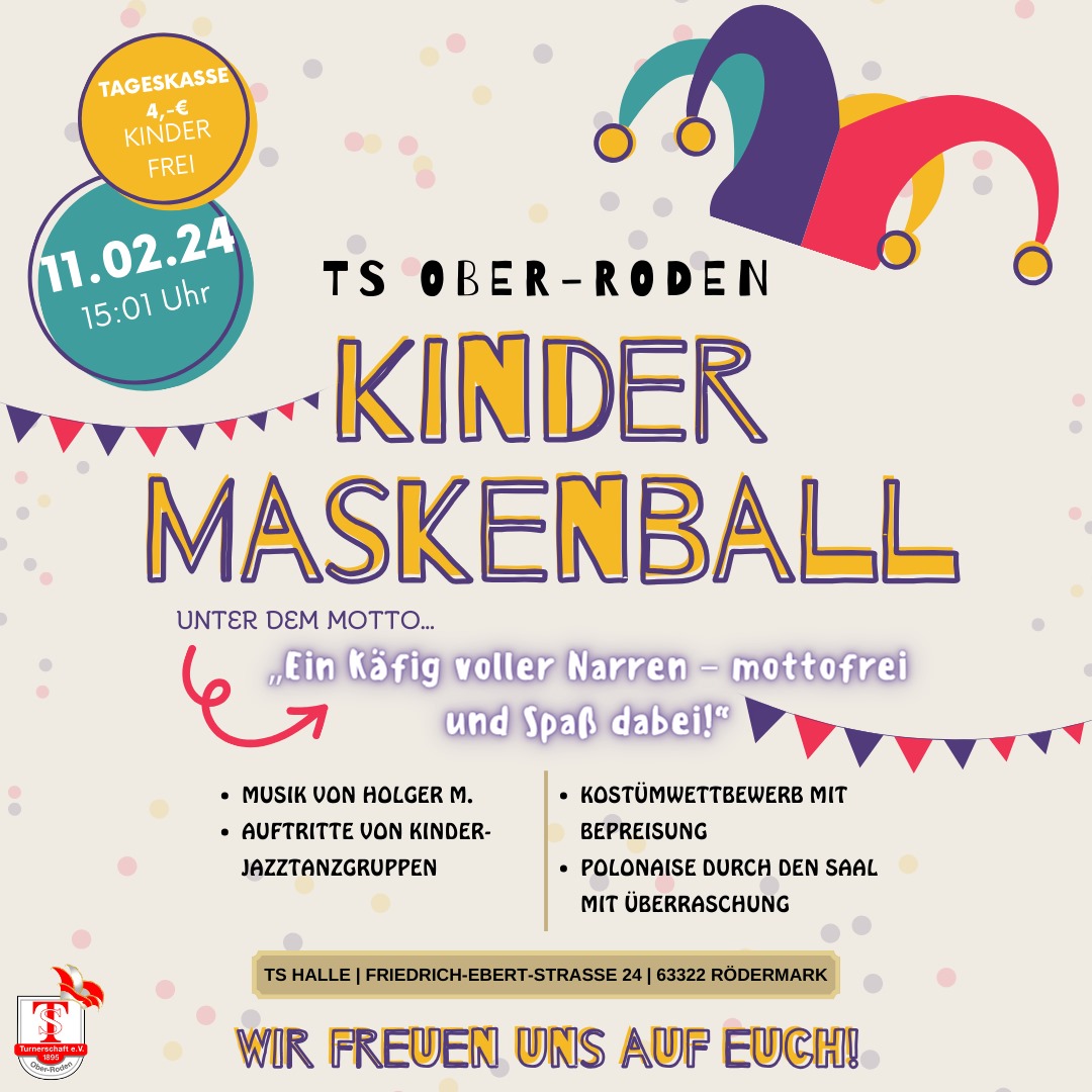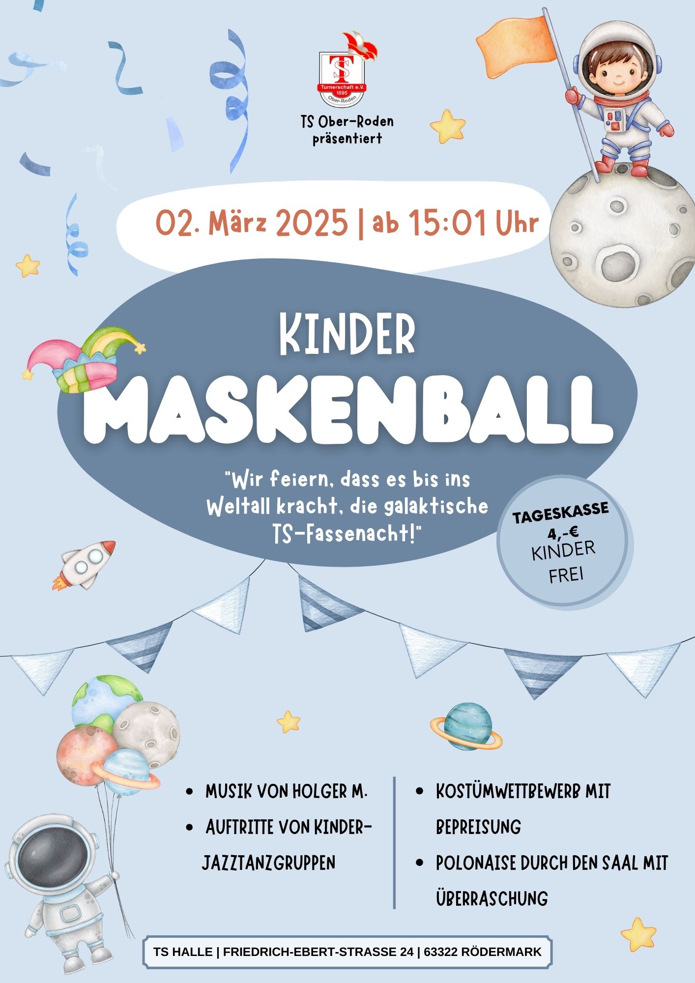 Kindermaskenball am Sonntag, dem 15.02.2026, ab 15:01 Uhr –> STATUS: Nur Tageskasse!