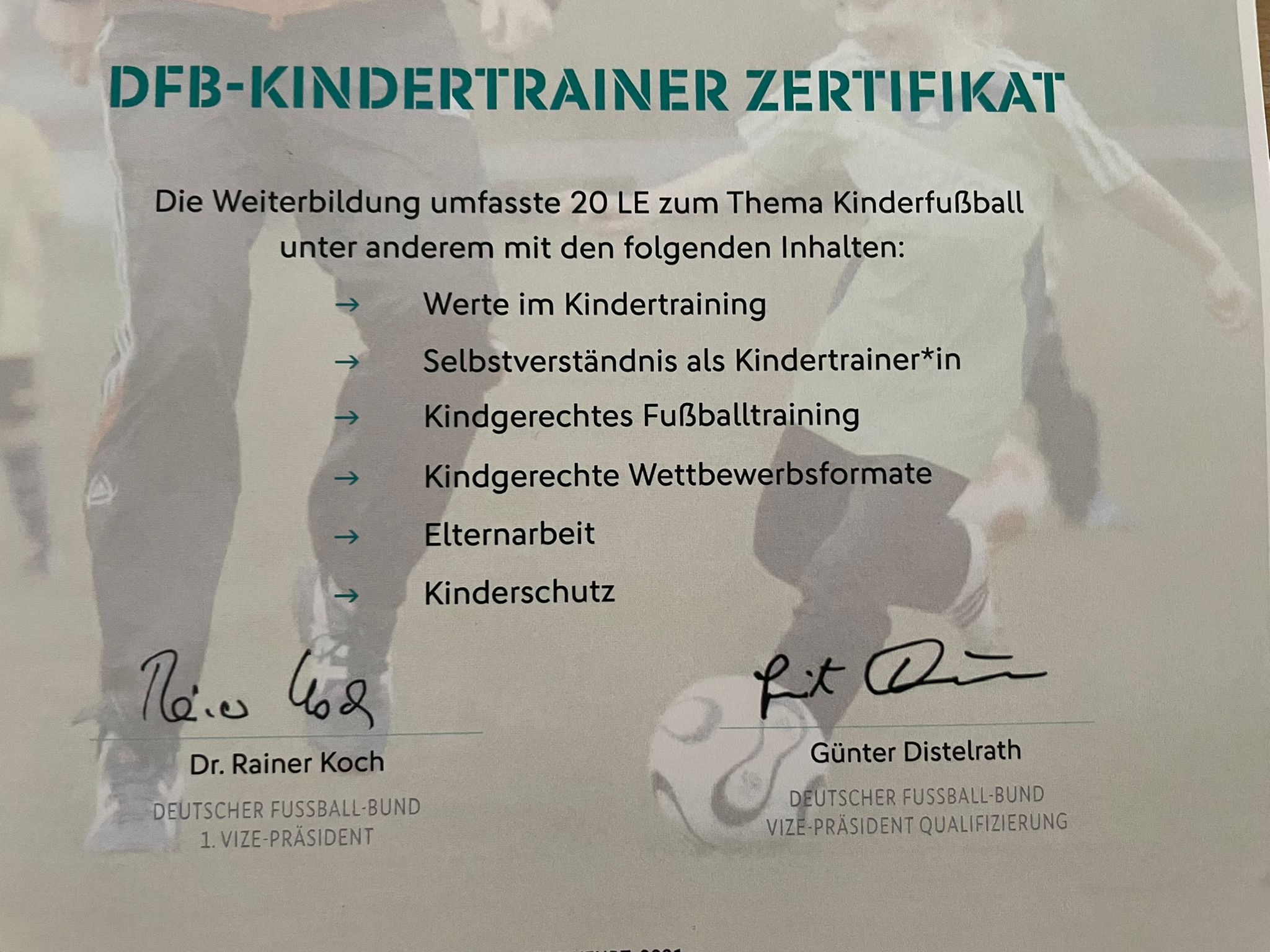 Nach einer dreitägigen Präsenzveranstaltung sowie einigen Online-Lerneinheiten, haben die TS-Nachwuchstrainer Felix Bucher, Nils Martiner, Marco Li Schiappoli und Luca Duizendstra das DFB-Kindertrainer-Zertifikat erhalten und sind somit bestens vorbereitet für die neue Saison als G-Jugendtrainer. Sowohl die G-Jugend-Koordinatoren Isabel und Torsten Martiner, als auch der Vorstand der TS Ober-Roden freuen sich über das Engagement der jungen Nachwuchstrainer.