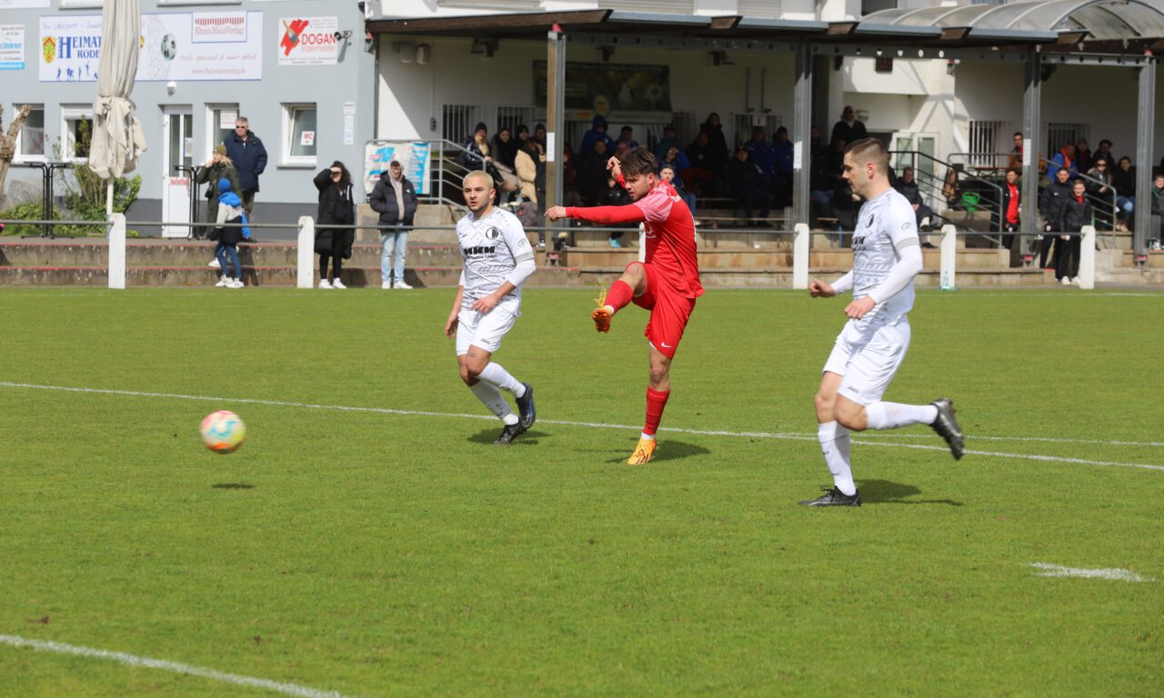 Wenn es vom Stadionsprecher um 16:53 Uhr aus den Boxen tönt: „Puh, das Spiel ist endlich aus,“ dann sahen die Zuschauer entweder ein extrem schwaches oder ein extrem knappes Spiel mit Vorteil der Heimmannschaft. Zweiteres war der Fall. Gegen den Tabellenführer SV Unter-Flockenbach erkämpfte sich das Team von Bastian Neumann einen eminent wichtigen 1:0 Heimsieg und damit drei noch wichtigere Punkte im Verbandsliga-Abstiegskampf. Mit Sicherheit war auch der schwer bespielbare TS-Hauptplatz ein Faktor, der den spielstarken Gästen nicht in die Karten spielte. Chancen gab es in der 1. Spielhälfte auf beiden Seiten. Bei den Gastgebern fehlte oft die Kaltschnäuzigkeit, wenngleich man den „Flockies“ sichtbar zusetzte. In der Hintermannschaft der Rot-weißen war über 90 Minuten hinweg immer ein Abwehrbein dazwischen, wenn die Gäste in Abschlusssituationen kamen. Kewin Siwek per Schlenzer und per Kopf war dicht dran am Führungstreffer. Sein Schuss war es auch, den der Torwart nach vorne prallen ließ, Kapitän Yannik Schultheis staubte zur Führung ab (42.), nicht unverdient. Kurz vor der Pause hielt Torwart Niklas Schwaar gegen Linus Hebling im Eins gegen eins überragend. Leidenschaftlich und mit großem Herz verteidigten die Hausherren in Halbzeit zwei. Hier rückte aber auch der Schiedsrichter in den Fokus, der ein ingesamt schweres Spiel zu leiten hatte. Nach 64 Minuten zeigte er Marius Wertge wegen einer Notbremse die Ampelkarte. Strittig, da ein TS-Verteidiger noch hätte eingreifen können. 25 Minuten (+Nachspielzeit) flogen nun Standards, Flanken und Schüsse in Richtung TS-Tor. Irgendwie war aber immer ein Bein dazwischen und Torwart Schwaar schien unüberwindbar. Nachdem Gäste-Torjäger Arikan den fälligen Ausgleich in der Nachspielzeit freistehend liegen ließ, war irgendwie klar: Der Fußballgott trug am vergangenen Sonntag Rot-weiß. Honoriert von vielen Zuschauern, die wirklich frenetisch jede Aktion begleiteten, rettete die Mannschaft von Bastian Neumann das 1:0 über die Zeit. In der Osterpause darf jetzt erstmal durchgeschnauft werden, um für den Abstiegskampf-Endspurt gewappnet zu sein. Es geht nun als nächstes gegen drei formstarke Teams, als erstes auswärts gegen Eintracht Wald-Michelbach (Samstag, 06.04.2024 um 16 Uhr).