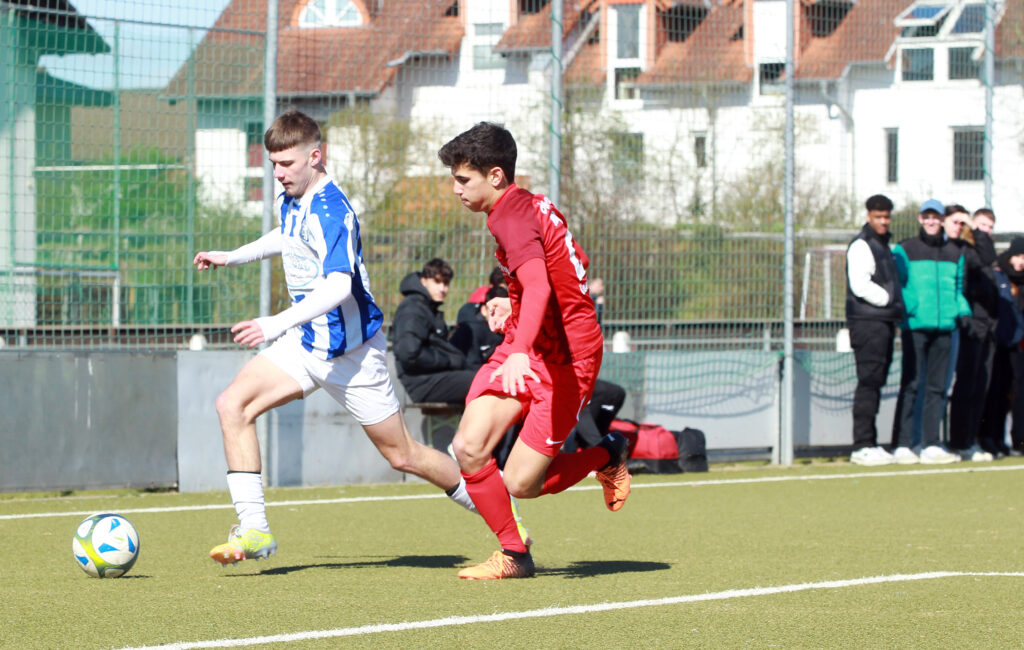 Am letzten Spieltag der Vorrunde in der Verbandsliga Süd kam die U19 gegen den Tabellendritten SG Bornheim nicht über ein 1:1 Unentschieden heraus und musste die Tabellenführung dem VfB Ginsheim überlassen. In der ersten Halbzeit ließ das Team von Paul Petrina zu viele Chancen liegen und ging durch einen Elfmeter in der 75. Minute in Rückstand. Zwar konnte Noah Henkelmann mit einem schönen Tor direkt ausgleichen (78.), es reichte aber nichr mehr zum Sieg.