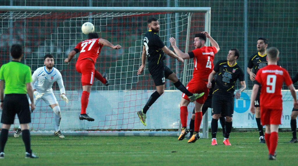 Einen Tag später, zur Hauptplatz-Flutlicht-Premiere, brannten zunächst die Gäste des SC Hanau 1960 gut zwanzig Minuten lang ein wahres Fußball-Feuerwerk ab. Herausragend heraus gespielt dabei das 1:0 (12.) – es konnte einem Angst und Bange werden. Doch schon vor dem Wechsel deutete sich die Wende an. Das Team von Bastian Neumann befreite sich von Minute zu Minute mehr aus dem Druck des Gegner. Und gewann über kämpferisches Teamwork auch spielerische Vorteile. Das 1:1 wurde vor der Pause zwar noch verpasst; in der 68. Minute war es dann aber soweit. Serkan Kozlus Direktabnahme aus gut 20 Metern brachte den Ausgleich. Was folgte, war eine packende Schlussphase, in der das Neumann-Team sich nicht nur die besseren Chancen erarbeitete, sondern auch die deutlich größeren Kraftreserven hatte. Luis Roth, in der 80. Minute noch am Aluminium gescheitert, traf zwei Minuten vor dem Ende der regulären Spielzeit zum 2:1. Kevin Siwek markierte in der Nachspielzeit das 3:1 und sicherte endgültig den 9. Saisonsieg. Mit den weiteren 6 Unentschieden und 9 Niederlagen liegt man mit nunmehr 33 Zählern weiter klar auf Kurs Klassenerhalt. Man darf gespannt sein, ob dies nach der Auswärtspartie bei Pars Neu-Isenburg (Sonntag, 24.4., 1500 Uhr) und den englischen Wochen in der Folge weiterhin so aussieht.