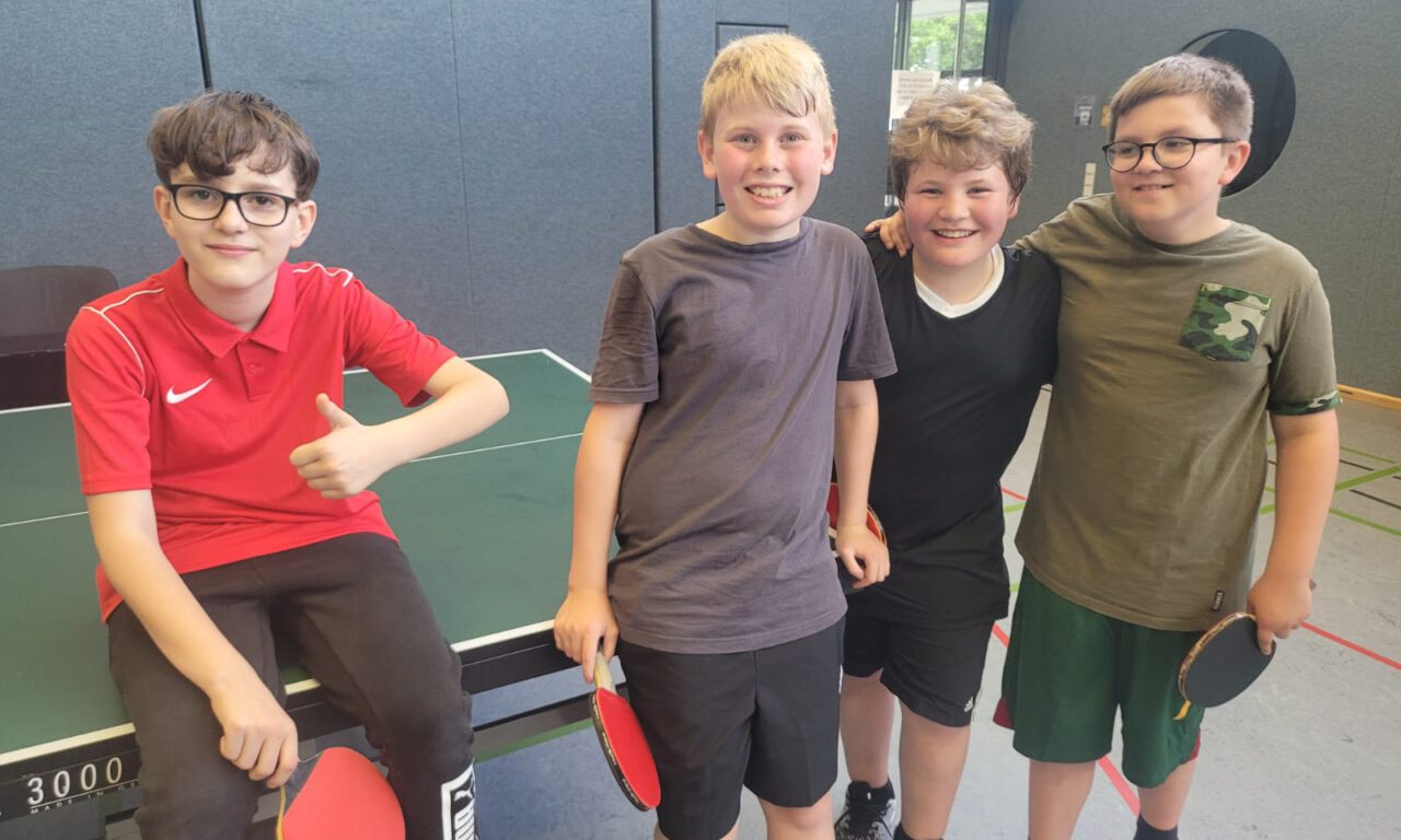 Die neue TS-Jugendmannschaft im Tischtennis, die ab der neuen Saison in der Jahrgangsstufe U13 spielen wird. Sie besteht aus Linus Wehner, Lennox Gehrmann, Marvin Draser und Jannis Dietrich. (Foto: TSO)