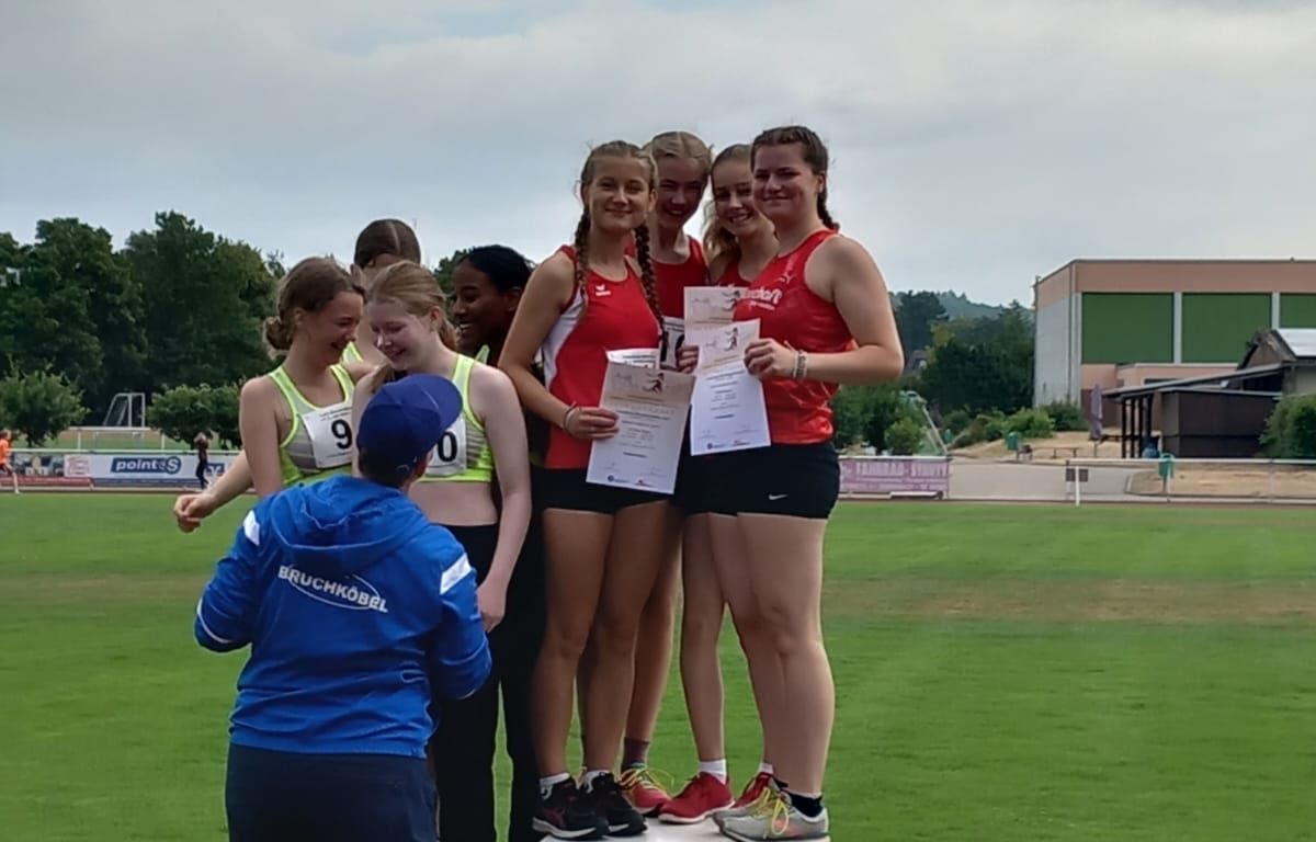 Bei den Kreismeisterschaften der Leichtathleten in Niederrodenbach wurde die TS-Mädchenstaffel in der Klasse WU18 Kreismeister über 4 x 100 m. In der Besetzung Eva Hente, Emilia Lohse, Anuk Herbener, Maira Waller liefen sie nach 54,11 Sekunden als Erste durchs Ziel vor fünf weiteren Staffeln.