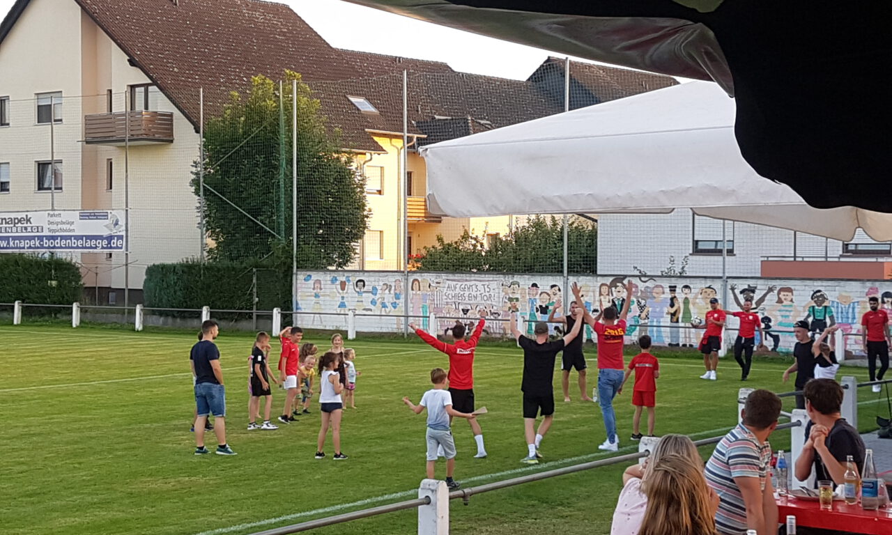 Das Fußball-Verbandsligateam von Bastian Neumann steckt mittendrin im anstrengenden Vorbereitungsprogramm – und vergisst dabei trotzdem nicht diesen „Spaß an der Freud“. So wie beim „Sondertraining“ mit zahlreich anwesenden Kid‘s in der „dritten Halbzeit“ nach dem 1:1 gegen den Hessenligisten 1. FC Erlensee. Am Ende des Biergarten-Eröffnungswochenendes gab es in einem chancenarmen, aber sehr temporeichen Testspiel, ein 1:1 Unentschieden. Einen Tag zuvor sah es unterm Otzberg nicht ganz so gut aus, man hatte sich eine 1:2 Niederlage beim Gruppenligisten TSV Lengfeld eingehandelt. Die Gegner bleiben auch in der weiteren Testphase sehr anspruchsvoll – mit dem Ziel, beim Verbandsliga-Heimspielstart am 15. August gegen Rot-Weiß Frankfurt bestehen zu können. Am kommenden Samstag, 24. Juli, hat man um 15.00 Uhr mit dem FV Bad-Vilbel den nächsten Hessenligisten zu Gast; am Sonntag dann (25.7., Anstoß 13.00 Uhr) reist man zu einem weiteren Vertreter aus dem hessischen Oberhaus, dem FC Türk Friedberg. Am Mittwoch, dem 28. Juli, beginnt dann mit der Partie gegen den SV Münster auf dem Gelände des 1. FC Germania Ober-Roden für die TS das 45. Rödermark-Fußballturnier.