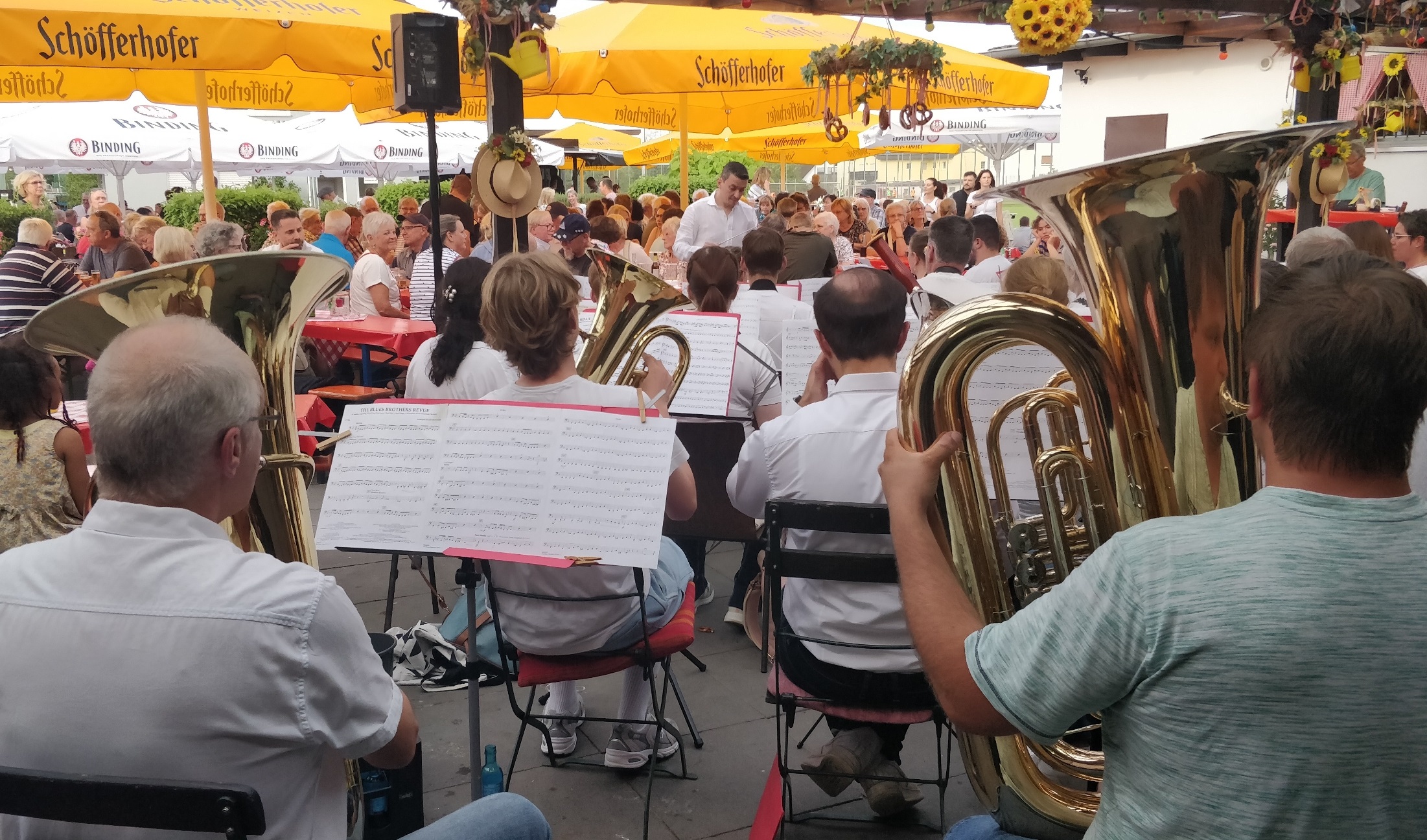 Über einen Sommergarten-Start nach Maß durfte sich die Turnerschaft Ober-Roden freuen. Über fünfhundert Besucher lauschten am vergangenen Freitag im Biergartenbereich dem Eröffnungskonzert des Musikvereins 03 Ober-Roden, plauderten unter Freunden bei bestem Biergartenwetter oder sahen das letzte Gruppenspiel des „Rödermark-Cups 2024“. Mit ganz viel Beifall und nach diversen Zugaben mit „Standig ovation“ belohnt wurde das Orchester des MV 03 unter der Leitung von Symeon Rizopoulos. Nach dem Eröffnungswochenende, dass am Sonntag mit den Finalspielen des Rödermark-Turniers abgeschlossen wurde, dauert das Biergarten-Vergnügen an der Walter-Kolb-Straße in Ober-Roden noch bis zum 4. August. Wobei die Wochenenden immer auch einen musikalischen Einschlag haben. „Spiel & Spaß – Cocktails & Summer Beats“ werden beispielsweise am kommenden Samstag (20.7.) ab 16.00 Uhr versprochen. Beim Speck & Eier Frühstück am Sonntag (21.7., ab 10 Uhr) unterhält „Jazz 03“ die Besucher bei einem Musikalischen Frühschoppen. Wochentags ist der Ferien-Biergarten täglich ab 17 Uhr, samstags ab 16 Uhr und sonntags ab 10 Uhr geöffnet.