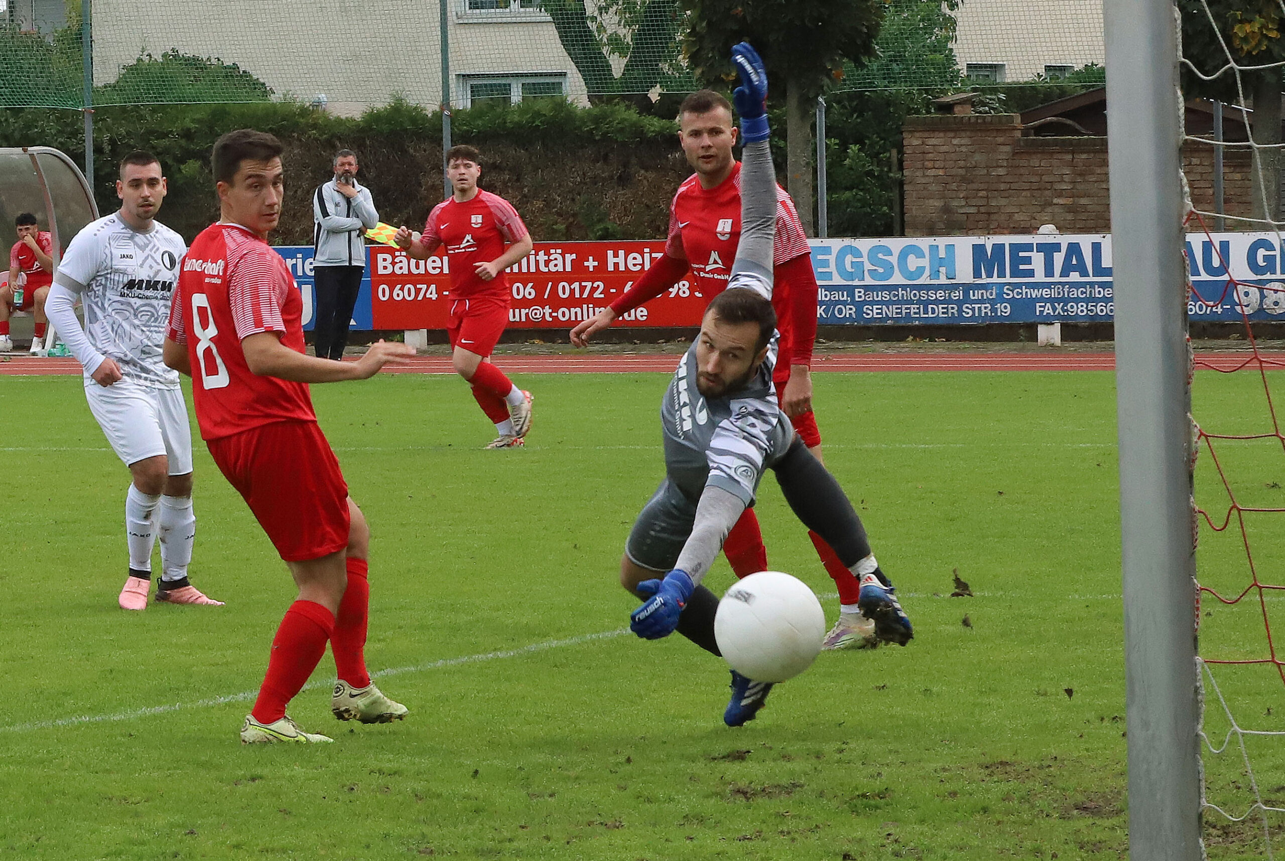 Der Start in den Großkampftag gelang der 2. Mannschaft. Mit einem 2:1 Heimsieg im Derby gegen den bis dato ungeschlagenen Tabellenführer FC Viktoria Urberach hielt das Team von Thomas Barowski und Oliver Hitzel-Kronenberg Anschluss an den Relegationsplatz. Angesichts der starken Verfassung der am Sonntag allerdings ersatzgeschwächten Gäste tut der Heimsieg doppelt gut. Dieser schien nach nur zwei Minuten weit entfernt. Leon Lake nahm einen unzureichend geklärten Ball mit der Brust mit und traf cool zur Führung für die Viktoria. Nach ca. 10 Minuten wachten die Gastgeber auf ihrem Hauptplatz aber langsam auf und arbeiteten sich ins Spiel. Per Kopf traf Robin Koch sehenswert, aber aus einer Abseitsposition. Nur zwei Minuten später konnte Tobias Hitzel einen Abpraller aber zum 1:1 versenken (21.). Nach einer Flanke köpfte Nick Fassinger in der 33. Minute gar zum 2:1 ein und drehte das Spiel. Kurz vor der Pause scheiterte Josef Allaw nach einem Reflex des Torwarts am Pfosten. Die zweite Halbzeit war dann noch mehr umkämpft und brachte auch die klassische Derbyhitze. Während die Turnerschaft anfangs noch zu Chancen kam und drückte, zog sie sich nach der Zeitstrafe gegen Hitzel (56.) mehr zurück. Urberach wurde so vor allem über Freistöße gefährlich, vergab aber die größte Chance aus dem Spiel in der Nachspielzeit. Mateo Griedelbach rettete vor der Linie. Kurz vor dem Ende wurde es mit zwei Zeitstrafen der Gäste nochmals hitzig, ehe der Derbysieg unter Dach und Fach war. Am kommenden Sonntag gastiert die 1B um 15 Uhr beim FSV Groß-Zimmern.